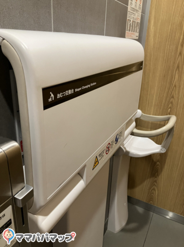 少しおむつ台の場所がわかりにくい可能性があります。館内マップを見つけたら予め確認するか、スタッフに声がけしてみるとバタバタしなくていいかもしれませんね。
