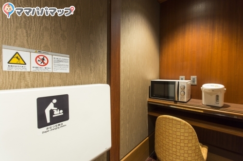 少し赤ちゃん休憩室(授乳室・おむつ交換台)の場所がわかりにくい可能性があります。館内マップを見つけたら予め確認するか、スタッフに声がけしてみるとバタバタしなくていいかもしれませんね。