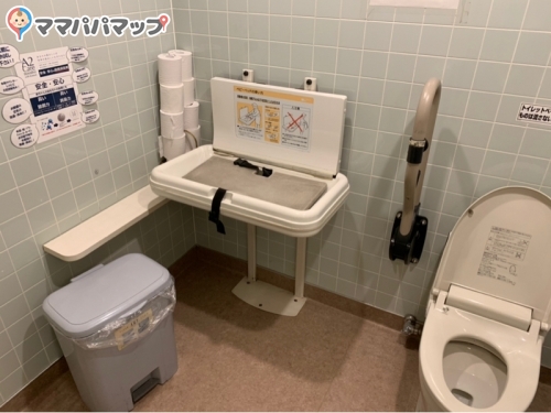 少しおむつ台の場所がわかりにくい可能性があります。館内マップを見つけたら予め確認するか、スタッフに声がけしてみるとバタバタしなくていいかもしれませんね。
