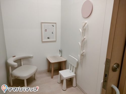 授乳室は個室で鍵もかかり、上の子用の小さな椅子や、荷物台、鞄・コート掛けなどとても素敵で充実した施設です!大きな姿見鏡があるのも嬉しいポイントです。