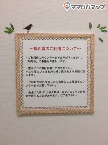 こちらの赤ちゃん休憩室(授乳室・おむつ交換台)は「清潔な赤ちゃん休憩室(授乳室・おむつ交換台)である」というアンケート結果が出ています。安心してお出かけしてくださいね。