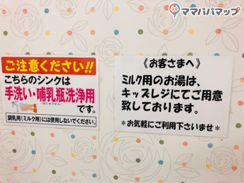 少し赤ちゃん休憩室(授乳室・おむつ交換台)の場所がわかりにくい可能性があります。館内マップを見つけたら予め確認するか、スタッフに声がけしてみるとバタバタしなくていいかもしれませんね。