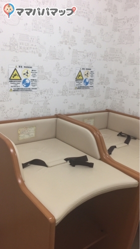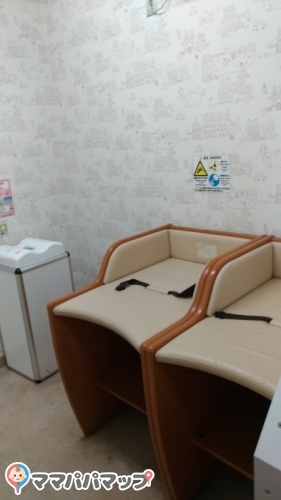 おむつ台は2つ。ドアを開けたままだと交換しているのが少し見えてしまいます。