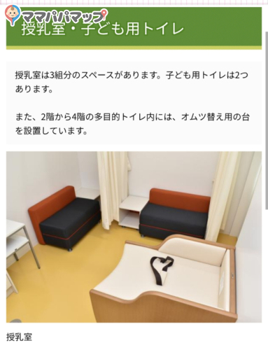 こちらの赤ちゃん休憩室(授乳室・おむつ交換台)は「清潔な赤ちゃん休憩室(授乳室・おむつ交換台)である」というアンケート結果が出ています。安心してお出かけしてくださいね。