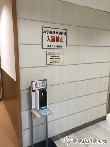 他の方からも不審者の通報があったのか、こんな張り紙が貼られていました。入室前に消毒もできて、今のご時世安心して使えます(^^)