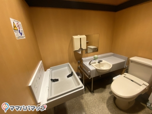 多目的トイレにオムツ台があります