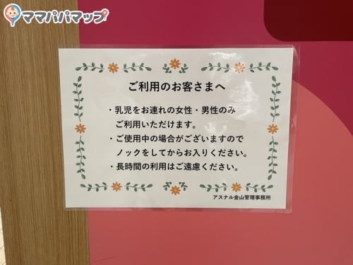 こちらの赤ちゃん休憩室(授乳室・おむつ交換台)は「清潔な赤ちゃん休憩室(授乳室・おむつ交換台)である」というアンケート結果が出ています。安心してお出かけしてくださいね。