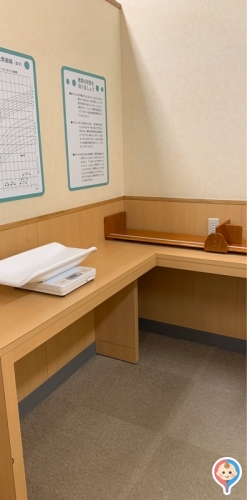 おむつ替えスペースの隣のスペースに身長計、体重計がありました。