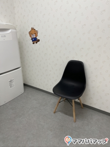 小さめの椅子と水道とおむつ替え台とゴミ箱がありました。部屋は広めでベビーカーでも余裕です。ミルクのお湯や机はなし。