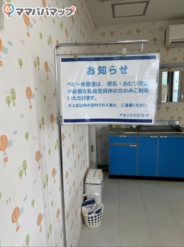 こちらの赤ちゃん休憩室(授乳室・おむつ交換台)は「清潔な赤ちゃん休憩室(授乳室・おむつ交換台)である」というアンケート結果が出ています。安心してお出かけしてくださいね。